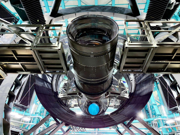 The Vera C Rubin observatory’s telescope uses the world’s largest digital camera. The lens is just over five feet across. (Photo: RubinObs/NSF/DOE/NOIRLab/SLAC/AURA/T. Lange)