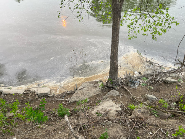 PFAs can contaminate bodies of water and accumulate in the form of foam that behaves similarly to shaving cream. State guidance might notify visitors to prevent people and pets from consuming water from the area. (Photo: MountainFae, Wikimedia Commons, CC BY-SA 4.0)