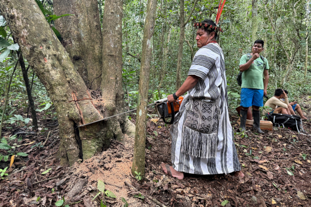 TOMASSONI: What I'm hearing from Rosa Espinoza, for example, is that the government of Satipo will implement this local law by designating or funneling funds to local communities to be trained in meliponiculture, in the practice of stingless beekeeping. But the sources of income are very limited in this region, and so by training them in stingless beekeeping, by giving them the materials, could open up a whole new opportunity for earning income in this particular area. We're already seeing this happen in other regions of the Peruvian Amazon. The other part of this implementation is very much focused on restoration. So the scientists, the Asháninka leaders, are really hoping that investments will be made in restoring areas that have been degraded by illegal logging, by wildfires.