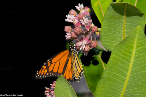 A female monarch butterfly feeds from a milkweed plant. (Photo: © Mark Seth Lender)
