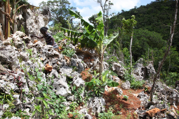 Farmers such as Congolin (top left corner) value their land immensely and often feel a deep connection to the plants and produce that it brings. (Photo: Jason Allen-Paisant)