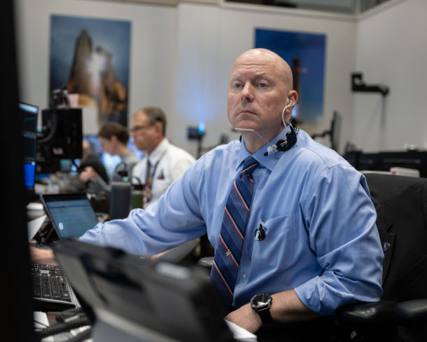 Judd Frieling, the Artemis II lead flight director for ascent, at his station during the Artemis II launch. (Photo: NASA, Robert Markowitz, Public Domain)