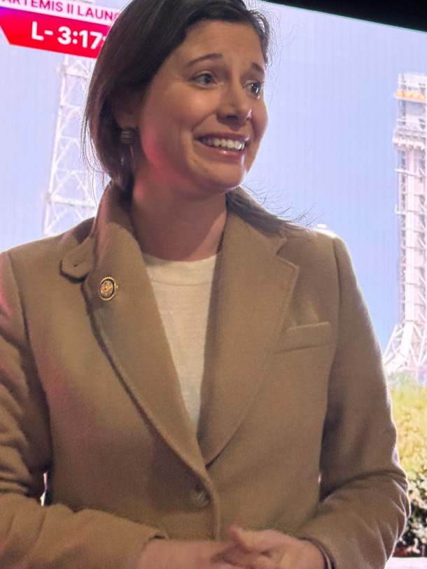 Congresswoman Maggie Goodlander (D-NH) at the Artemis II launch party. (Photo: Jennifer Stevens-Curwood)